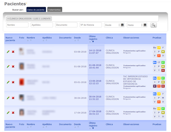 Se han realizados mejoras en el listado de pruebas de pacientes, ahora se muestra en el listado de pacientes los archivos de galería, mostrando activo el tipo de prueba subido.